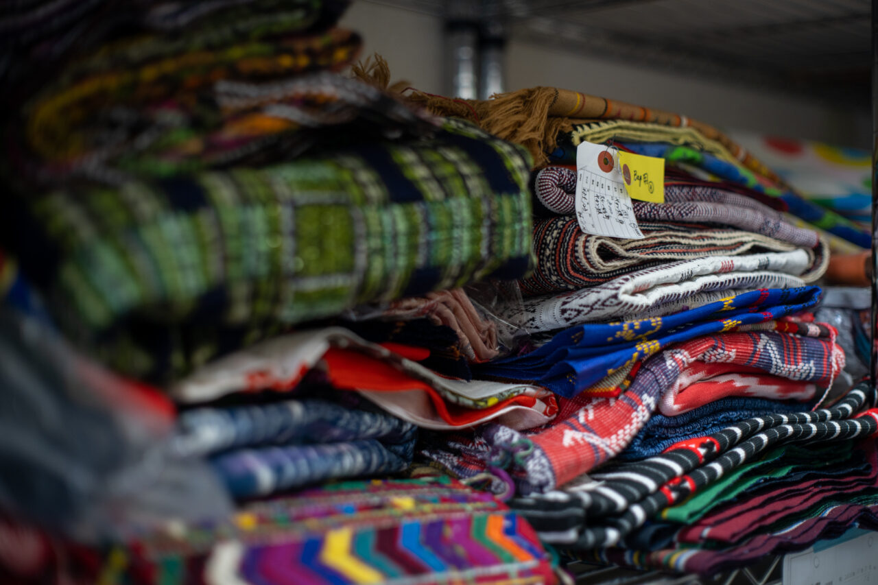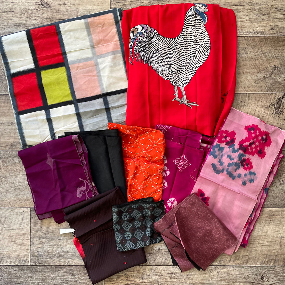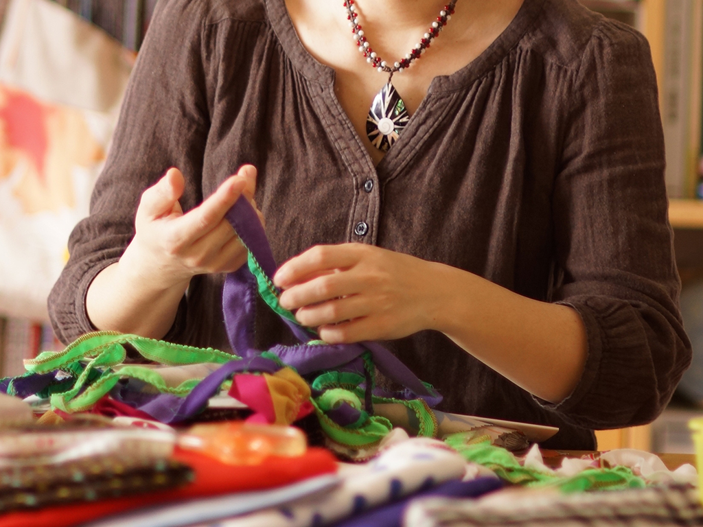 生地それぞれの色や柄、素材をいかして、新しい生地へとリ・デザイン。