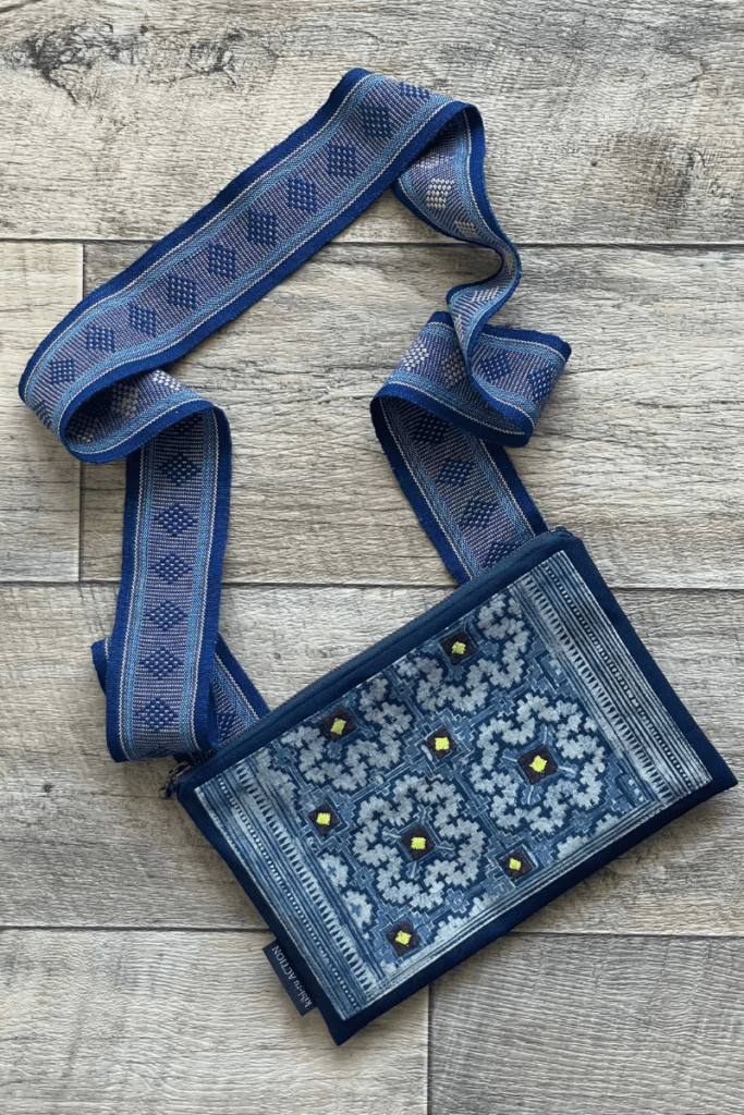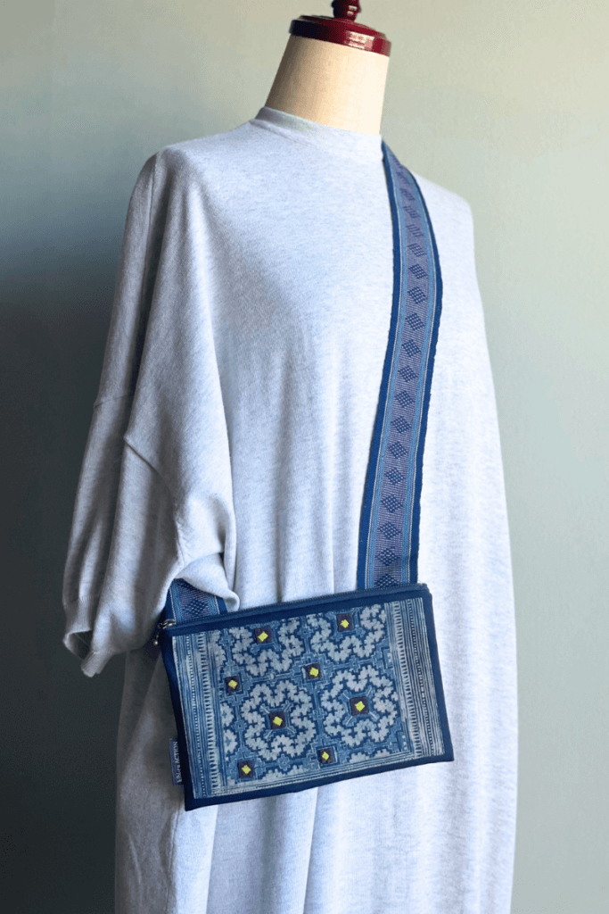 ネイビーを基調とした装いがお好みの常連様であるJ.M様。「派手すぎず、でも装いのポイントになるようなバッグを」というご希望から、今回の制作が始まりました。