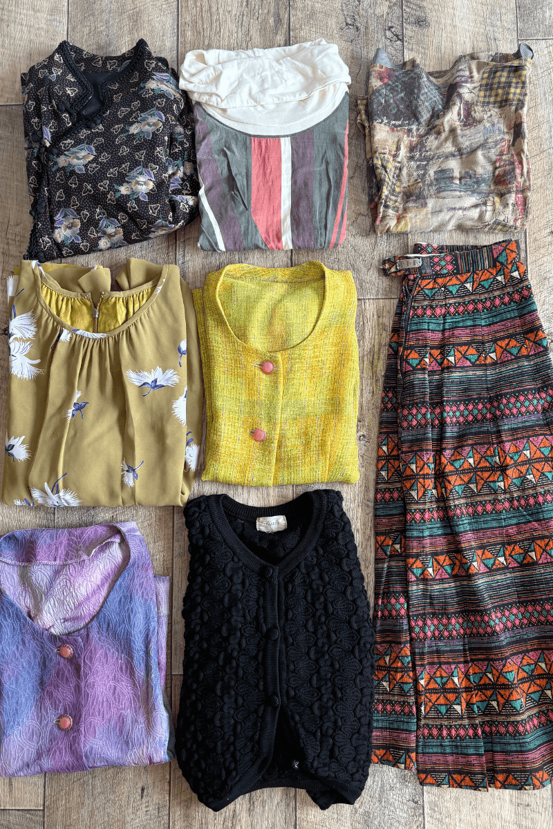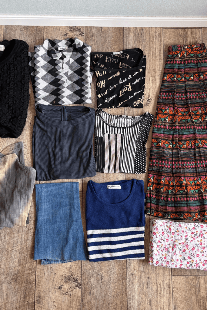 お亡くなりになったお母様の洋服をなかなか整理できずにおられたM.T様。「母の服をバッグにしてそばに置きたい」という願いとともに、色も柄も素材も異なる10~15種類ほどの洋服をお預かりしました。「可能な限りすべての生地を組み合わせてほしい」という、お母様への深い愛情が伝わるご相談でした。